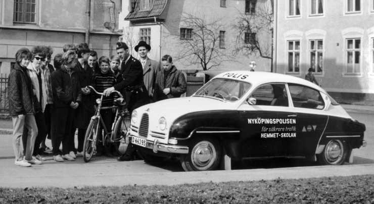 – De äldsta bilderna på Saab som polisbil i boken är på en Saab 96 tvåtakt i Nyköping. Men det var med fyrdörrarsversionen av Saab 99 och insprutningsmotorn från EMS som märket verkligen etablerade sig som polisbil, säger Fredrik Nyblad