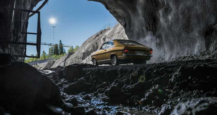 Dannemoras områden är tusen nyanser gruvliga makadamvägar och svarta skuggor skjuter ut från pelarna. Det är rått, det är grått och mängder med betongfundament att parera. Som en stor labyrint. Själv sitter jag i själva bollen, i en burkig spartansk kolsvart kupé och gasar som en galning medan stenmjöl tränger in och lägger sig som ett fint täcke över de originalmonterade extra instrumenten.