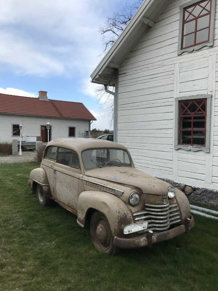 Tjugoåtta år senare öppnar jag och Henriks syster Inger dörrarna till flygelbyggnaden. Garaget är trångt och taket är lågt. Vårljuset kikar försiktigt över våra axlar in på den breda grillen på Ragnars Opel Olympia. Karossen är täckt av ett tjockt dammlager, taket är prydligt garnerat med sädeskorn.