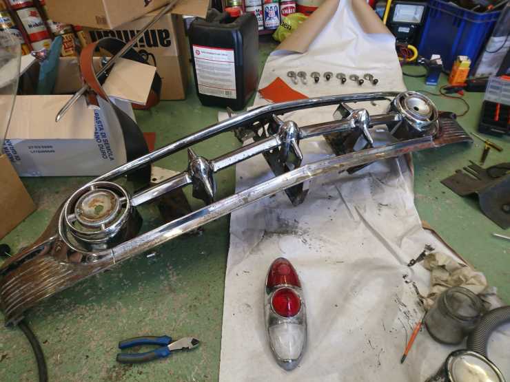 Kåre är lite som en iller och hans putsmani har bland annat gett oss en otroligt fin och rätt patinerad grill där E-bay-hittade glas till positionsljus/blinkers blev en fullträff. Grillen såg tidigare ut som bajs med ett antal påmålade lager med färg.
