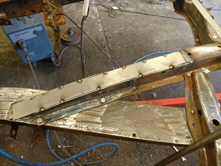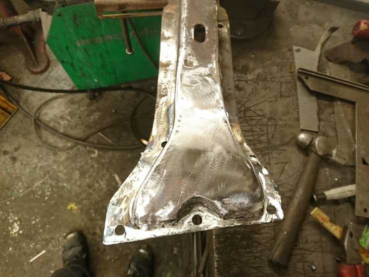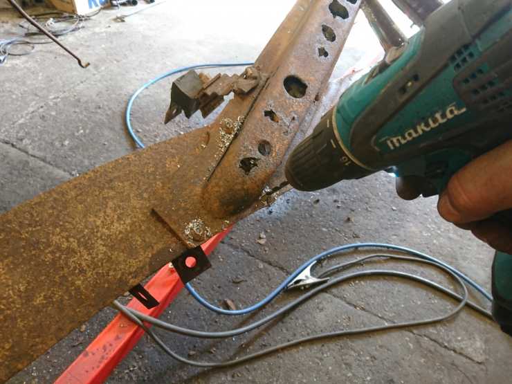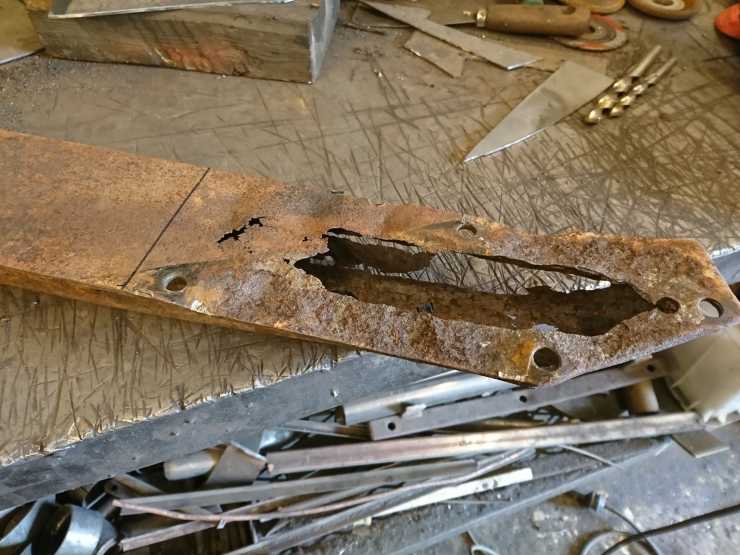 Sedan handlar det ju om lite grövre smide då det är 2mm tjock plåt att jobba med. Jo det är kul och en svetsvänlig dimension utan risk att bränna retsamma hål som det lätt kan bli i tunnare plåt. Jag underlättar dessutom genom att borra ur nitar så nya balkar enkelt kan lagas/tillverkas på svetsbänken.