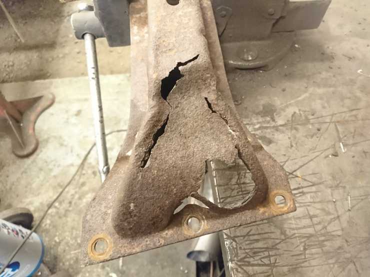 Växellådsbalkens ena infästning är gravt rostskadad.