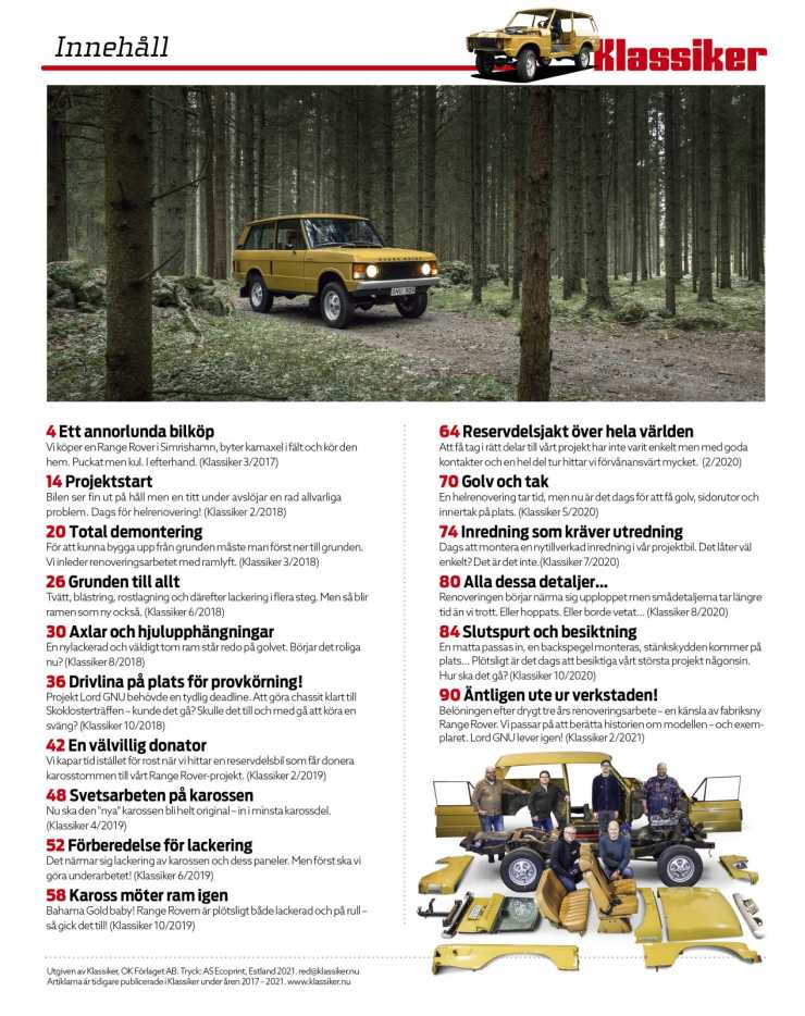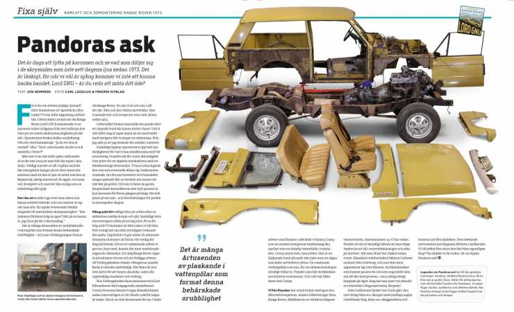 Allt började – som det ofta brukar – med ett tips. I Simrishamn skulle det finnas en Range Rover 1973 som bara haft en ägare. Originalskick med V8-motorn kvar, ovanligt! Besiktigad och körklar skulle den också vara.