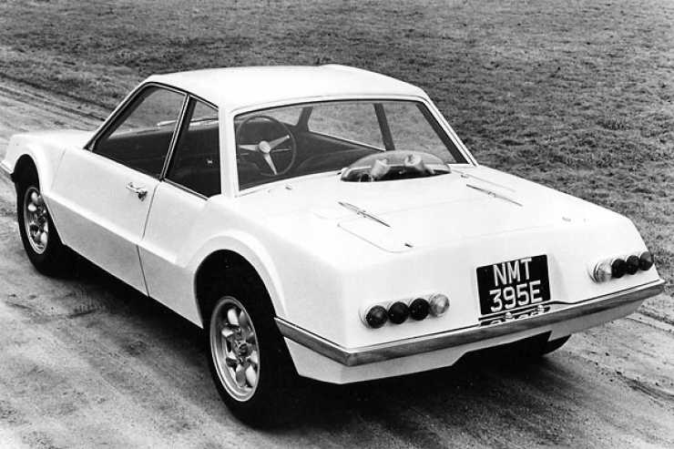 Det hade man redan tjuvstartat med. Rovers chefdesigner David Bache med sitt team tog på kort tid fram en avancerad coupé med den nya V8:an monterad i mitten, men offset åt höger.