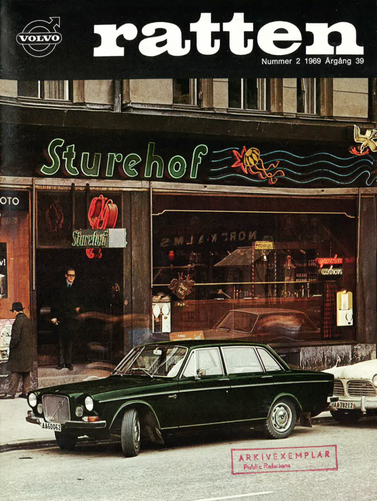 Volvo har vårdat minnet av Larson och Gabrielssons kräftmiddag på Sturehof. Här är ett exempel, ett nummer av kundtidningen Ratten 1969 där krögaren intervjuas - han körde Volvo 164.