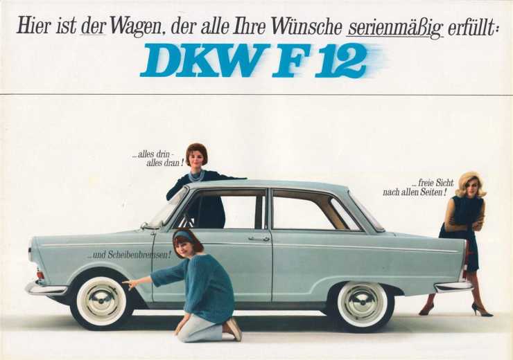 Ett avgrundsdjupt teknikskifte närmade sig. När Mercedes-Benz 1965 sålde aktiemajoriteten i Auto Union till Volkswagen så lades produktionen av tvåtaktsbilar ner med undantag av arméfordonet DKW Munga. Totalt tillverkades 82 506 exemplar av DKW F12. F12 Roadster byggdes i 2 794 enheter och F11 i 30 738 exemplar.