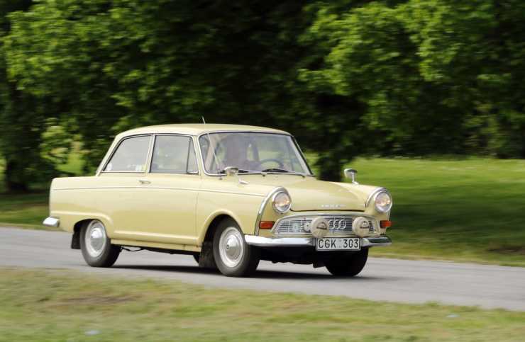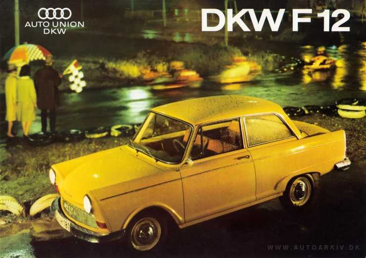 Auto Union bildades när DKW 1932 gick samman med Audi, Horch och Wanderer. Efter andra världskriget flyttade Auto Union från Sachsen i Östtyskland till Düsseldorf i Västtyskland. År 1950 kom biltillverkningen igång igen och från 1957 ägdes företaget av Mercedes-Benz. Medan den större DKW 3=6 hade rötterna i en 1930-talskonstruktion så var DKW Ju-nior en modern bil med pontonkaross. Den började tillverkas 1959 i Auto Unions nya fabrik i Ingolstadt. Med en rakare taklinje som förstorade kupén och den större motorn på 889 cc från Junior De Luxe utvecklades modellen till F12 som lanserades 1963