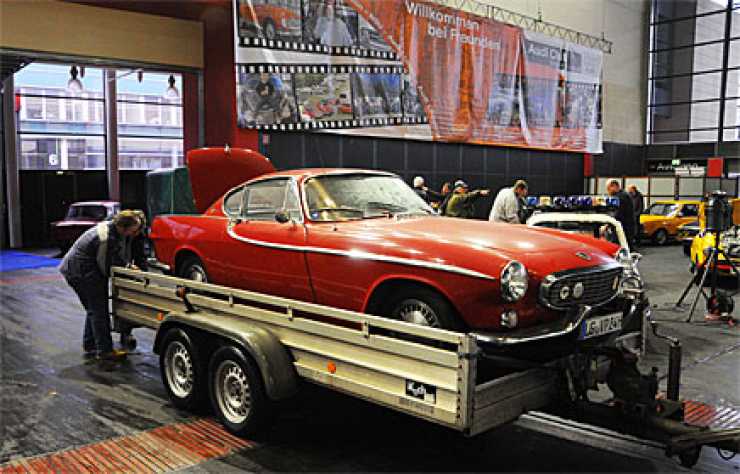 En tidig P1800 på väg till Volvoklubbens monter.