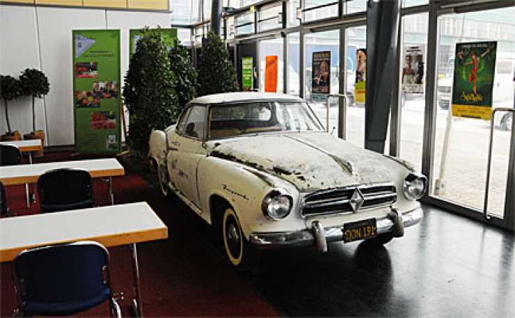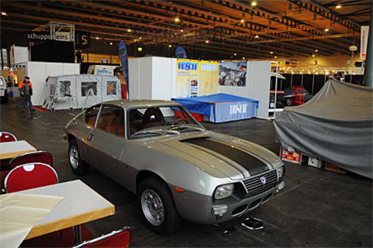 Lancia Fulvia Zagato väntar på att ställas in i montern. Nycklarna sitter i, kanske skulle man ta en liten provtur....?