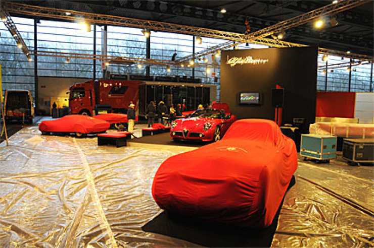 I den stora Alfa Romeo-montern arbetas det frenetiskt. Under de röda täckena döljer sig milstolpar i företagets historia. På hedersplats tronar den moderna 8C - med ständigt tjutande larm.