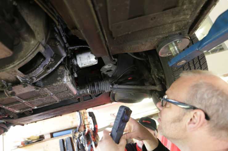 Anders hissar upp Lady Jagga och börjar granska underredet.