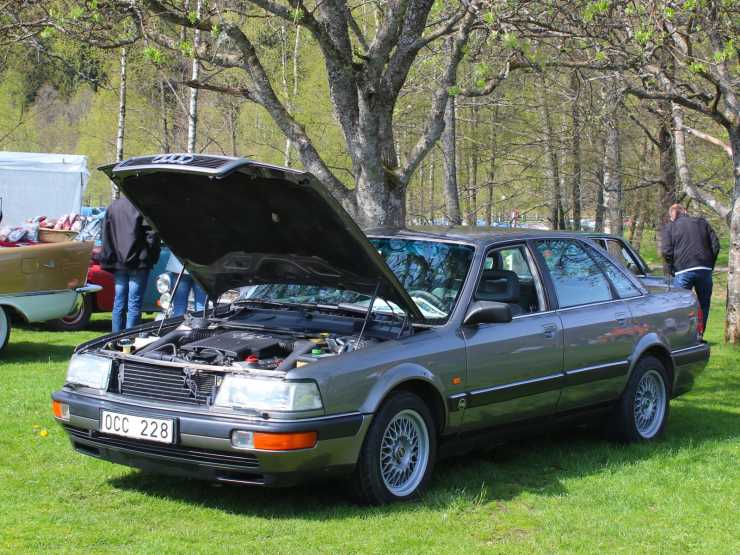 Nej det här är en långdistanslöpare, gjord för raska långfärder längs Autobahn ner till Alperna och exklusiva skidorter. Och varför just detta då, jo, för Audi V8 har en märklig finess, den har en färdig skidbag originalmonterad i baksätet!