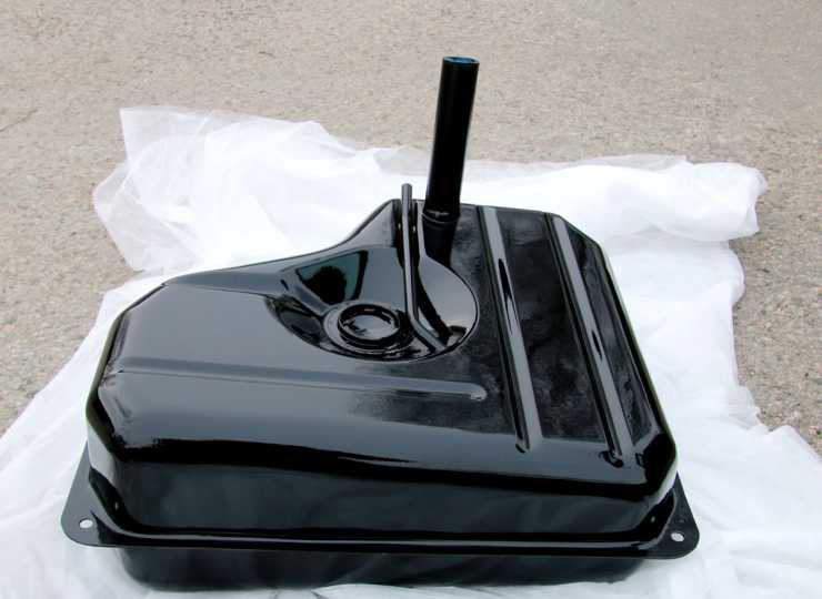 Den är också ett exempel på att man under en renovering spenderar en hel del tid med att åka omkring. Den här bensintanken har från att den köptes från England fått åka omkring en rejäl runda på rutten Landvetter-Hestra-Borås-Sexdrega-Rävlanda-Härryda-Landvetter innan den blev så här bra.