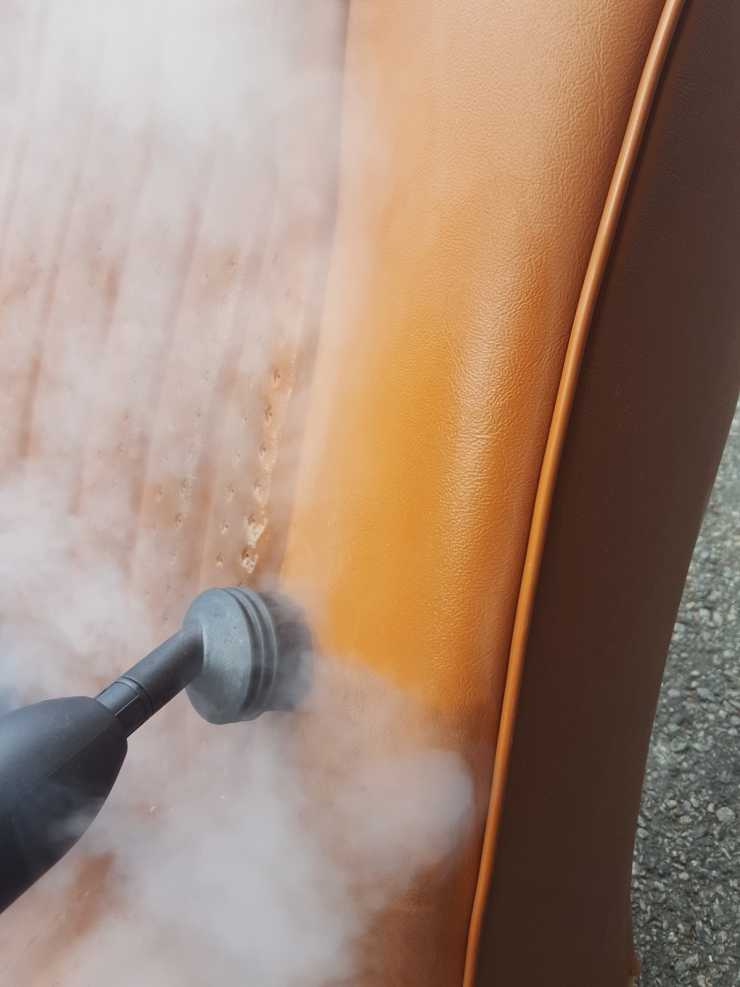 Sätena från reservdelsbilen var väldigt fina, men bilen hade ju stått i 35 år och dom var rejält ingrodda med smuts. Ångtvätt gör susuen!