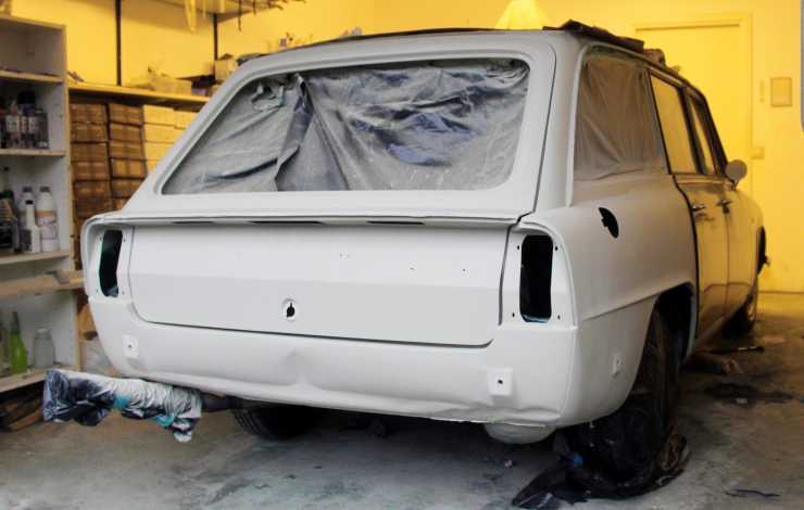 Från början var målet att göra en körklar bil av ladugårdsfyndet, med fokus på det mekaniska. Det blev dock en hel del mer, ny inredning, trösklar bagage och massa annat. Lacken på bilen såg relativt fräsch ut för att vara en bil som slitit hund i sådär 40000 mil och sen stått på en loge i 16 år. Omlack inskränkte sig till delar av bakre stolparna som behövde lite svets, likaså trösklar och front, motorrum, bagage och golv lackades också om. Kulören blev inte helt rätt men fick duga.