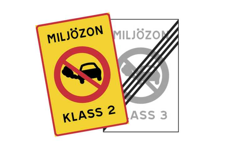 I miljözon klass två får bara utsläppsfria bilar och bensin- och dieselbilar som är från 2011 eller nyare köra in. Utsläppsklassen som ska klaras är Euro 5. Från första juli 2022 skärps kraven på dieselbilar i miljözon två. Då är bara dieselbilar nyare än första september 2015 tillåtna, det vill säga de har utsläppsklassen Euro 6. För utsläppsfria bilar och bensinbilar ändras inte miljözon två.