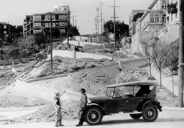 En av San Fransiscos, ja, en av världens märkligaste gator är denna sektion av Lombard Street, som med sina åtta skarpa knixar har gjort vägen ned från Russian hill till Leavenworth street farbar sedan 1922. Det fanns en väg här innan men få eller inga bilar klarade den 51 procentiga lutningen vid denna tid.