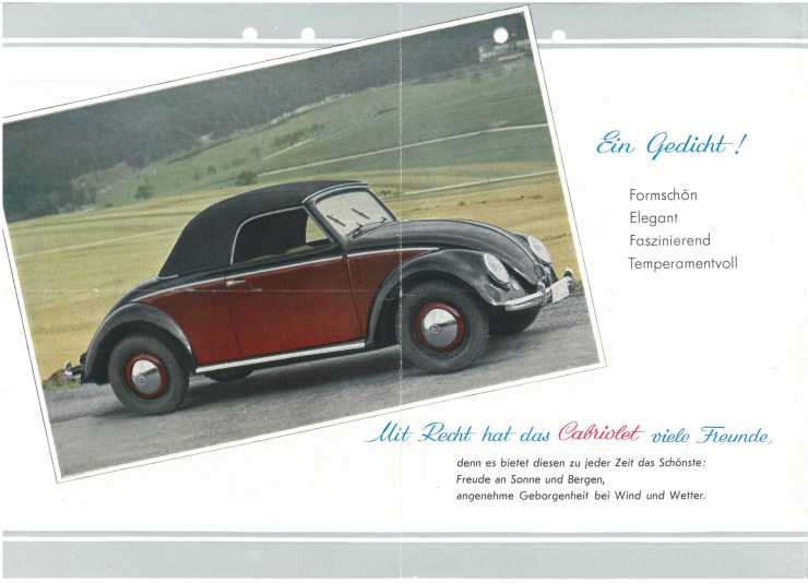 Hålslaget och med vikmärken – men ändå en originalbroschyr på Volkswagens tvåsitsiga cabriolet Hebmüller. Vilket marknadsfynd!