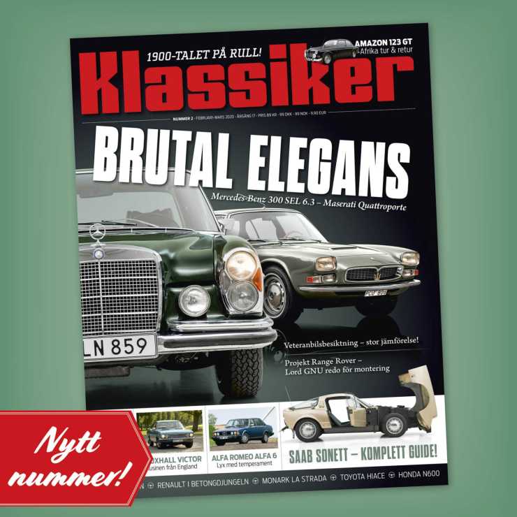 Äntligen dags för ett nytt nummer av Klassiker! Vräk dig i lyxiga Maserati Quattroporte, Mercedes-Benz 300 SEL 6.3 och Alfa 6, fascineras av en Volvo Amazon 123 GT med samma ägare sedan ny och bli sugen på en Saab Sonett! Dessutom Range Rover, Vauxhall Victor och en genomgång av bilbesiktning för klassiska bilar.