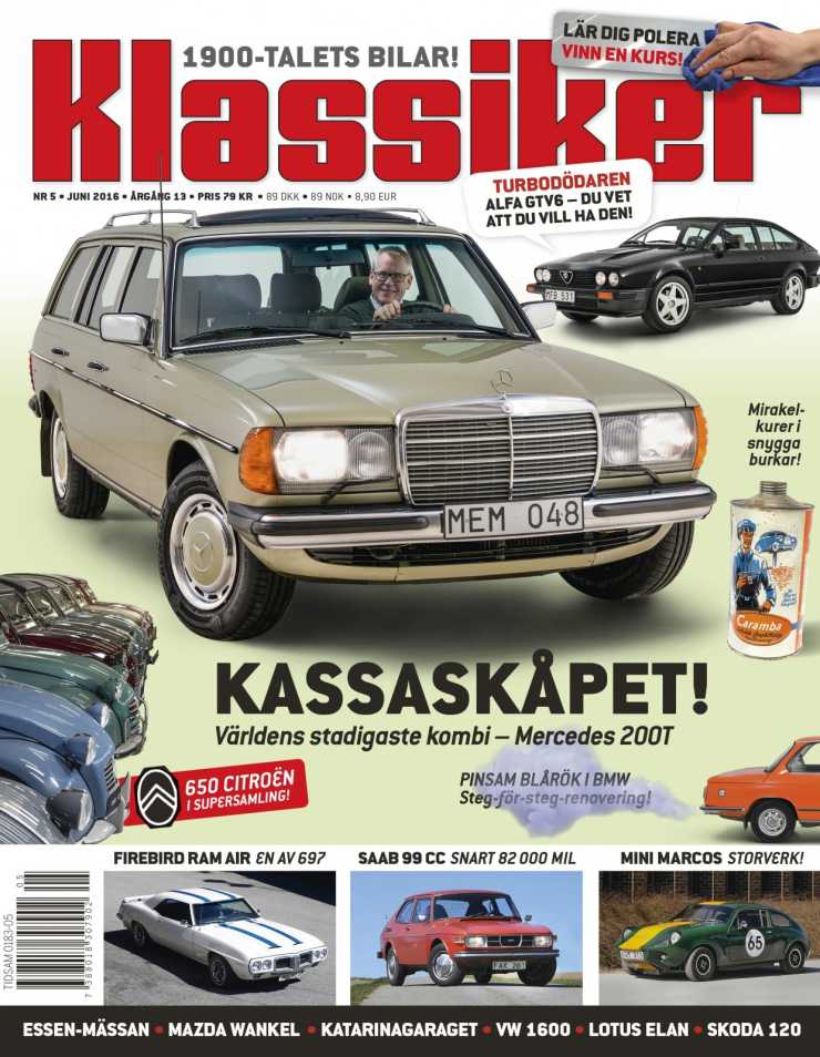 Vad är mest oväntat – en 30 år gammal Mercedes som bara gått 7 000 mil eller en 40 år gammal Saab som tangerar 82 000 mil? I Klassiker 5/2016 kan du läsa båda historierna. Dessutom Pontiac Firebird Ram Air, Alfa GTV6, Slussenmacken, topplocksrenovering BMW 1502 och världens största Citroën-samling!
