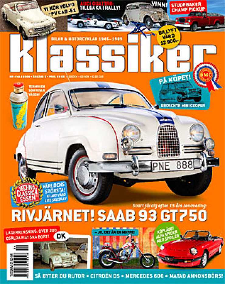 I Klassiker 4/2008 berättar vi om en långsamt renoverad Saab 93F GT750 1960. När våren övergick i vinter gav vi oss ut på Sverigeresa i en Volvo PV 445 Cabriolet 1951. Läs också om en fantastisk Fiatskatt i Danmark!