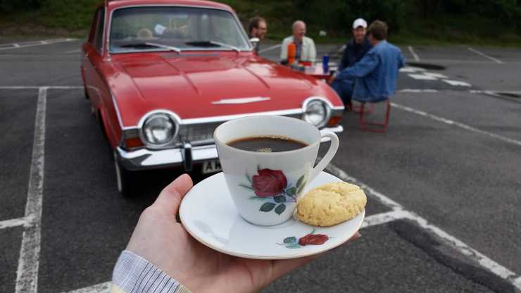 Två snygga Ford Fiesta, en Mercedes 190 i toppskick hörde till deltagarna denna den tredje upplagan av Frukostklubben i Stockholm.