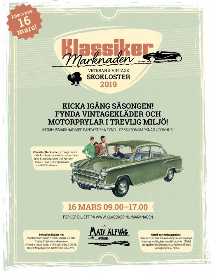 En entusiastmarknad för både motor och mode – det är idén med KlassikerMarknaden på Skokloster i mars. Fynda automobilia, vintagekläder, reservdelar, kuriosa och en massa annat kul i trevlig miljö! Välkommen!