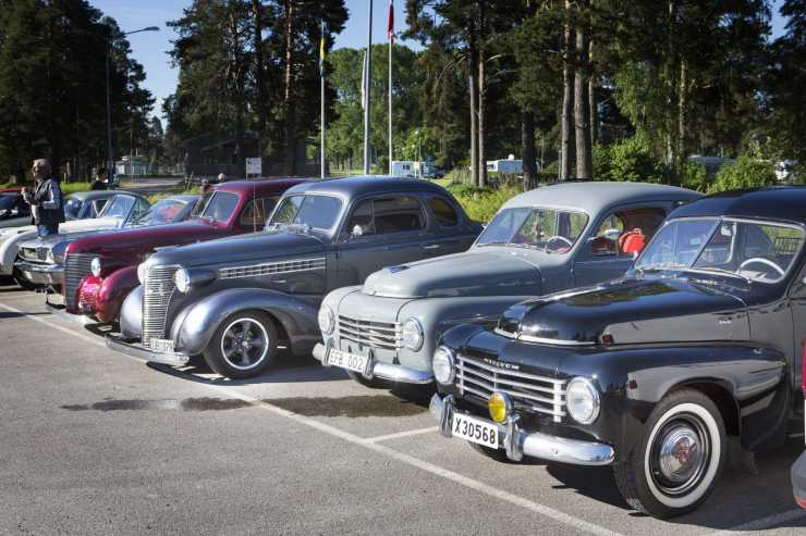 På landtungan mellan sjöarna Vågen och Varpen i Bollnäs träffades helgen före Midsommar ett 40-tal morgonpigga bilar med sina besättningar.