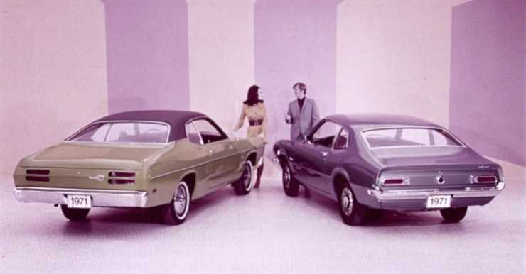 sjuttiotalets nya små amerikanare i en slags reklamfilm som inte var för allmänheten, utan för återförsäljare. Plymouth Duster mot sin närmaste konkurrent, Ford Maverick